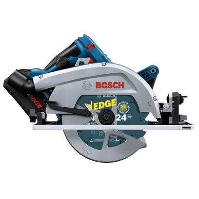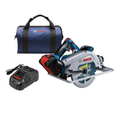 This circular saw delivers corded performance from an 18V cordless 7-1/4 In. saw. The Bosch GKS18V-25GC 18V 7-1/4 In. BITURBO Brushless™ Circular Saw has a 2-1/2 In. cut capacity, easily cutting through 2X (“two by”) material across the entire bevel range. This circ saw is part of the PROFACTOR™ System, which pairs BITURBO Brushless™ Technology with a CORE18V® High Power Battery. BITURBO Brushless™ Technology is a high-performance motor and drive-train system designed to deliver power comparable to high-demand corded tools. Its ECO mode helps get the job done by extending runtime by up to 30%. One-Touch depth-adjustment allows quick, accurate change with one hand. An onboard user interface provides speed-setting control with six settings and tool feedback. The saw features connectivity (module sold separately), providing a link to a connected device via the Bosch PRO360 App to customize settings and receive detailed feedback. It has a 0-50° bevel range, and the auxiliary handle improves stability and handling. The saw is compatible with Bosch as well as select manufacturers’ track-guidance systems, enabling users to make straight cuts fast. It has an electronic convenience brake for less downtime between cuts and a 360° pivoting port directing dust away from the body when the saw is held in either hand. The kit includes a CORE18V® 8 Ah High Power Battery, which delivers 50% more runtime and over 75% more power than the CORE18V® 4 Ah battery, powering high-demand applications.