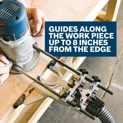Bosch router, guides along the work piece up to 8 inches from the edge.