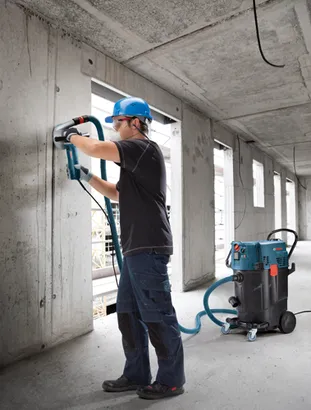 The Bosch VAC140AH 14-Gallon Dust Extractor with Auto Filter Clean and HEPA Filter provides a complete package that is designed to help users move toward compliance with the OSHA silica dust regulation. The dust extractor delivers a maximum 150-cubic-feet-of-air-per-minute rate (CFM), with a sustainable 97 In. static water lift (maximum). The automatic on-board filter-cleaning system activates every 15 seconds to help maintain maximum suction power. The included HEPA filter captures 99.97% of particles at 0.3 microns and larger. The included fleece filter bag helps to protect the filter and provides the optimal containment of dry dust and debris. The dust extractor also has power tool activation that allows the tool to activate the vac and a Power Broker dial to match the suction force to application.