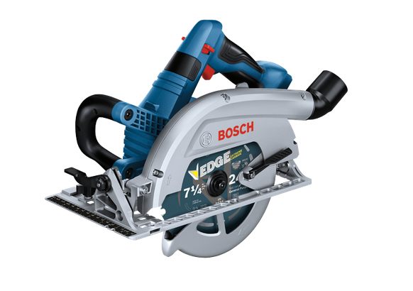 Cette scie circulaire sans fil 18V de 7-1/4 po offre des performances équivalentes à celles de modèles filaires. La scie circulaire 18V de 7-1/4 po avec lame à gauche GKS18V-26L Bosch permet, avec sa capacité de coupe de 2-5/8 po, d’effectuer facilement des coupes dans des matériaux de 2 po d’épaisseur sur l’ensemble de la plage de coupes biaises. Le fait que la lame se trouve du côté gauche améliore la visibilité de la lame et donc de la ligne de coupe quand la scie circulaire est tenue de la main droite. Fait partie du système PROFACTOR™ associant la technologie BITURBO Brushless™ et une batterie High Power CORE18V®. La technologie BITURBO Brushless™ combine un moteur haute performance et un système de transmission conçu pour fournir une puissance comparable à celle des outils filaires à forte demande. Elle est inclinable pour effectuer des coupes biaises de 0 à 50° et dispose d’une poignée auxiliaire améliorant la stabilité et la prise en main. La scie possède une poignée auxiliaire placée exactement à la bonne hauteur pour réaliser des coupes droites guidées dans du bois de 2 po d’épaisseur. La scie est dotée d’une tubulure d’éjection orientable sur 360° permettant de projeter la poussière loin de l’utilisateur, quelle que soit la main avec laquelle la scie est tenue. Du fait que la lame se trouve du côté gauche, votre main n’a pas à supporter le poids de l’outil lors de coupes longitudinales réalisées avec la main droite : la scie appuie sur la pièce.