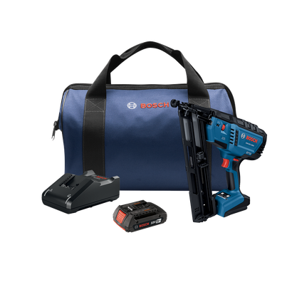 Ensemble cloueur de finition 18V Bosch incliné calibre 15 sans balais avec (1) batterie Standard Power de 2 Ah