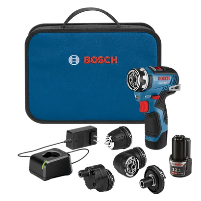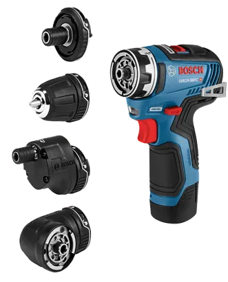Cette perceuse/visseuse 12V Max Bosch est doté du système d’adaptateurs 5 en 1 FlexiClick® et d’un moteur sans balais performant garantissant plus d’autonomie et plus de puissance (couple de 300 po-lb). La GSR12V-300FC s'adresse aux professionnels à la recherche d'un outil de haute qualité capable de repousser les limites pour venir à bout des chantiers difficiles. D'un poids de 1,2 lbs. seulement (outil seul, sans batterie) et 1 750 tr/min de vitesse maxi, cette robuste perceuse-visseuse répond à vos attentes en termes de performances et de compacité. Elle offre deux positions de vitesse : 0-460 tr/min pour le vissage à couple élevé et 0-1 750 tr/min pour le perçage à haute vitesse. Elle est fournie avec un porte-embout magnétique pour les vissages de base. Les quatre adaptateurs (un porte-embout à verrouillage, un mandrin automatique, un mandrin excentré et un renvoi d’angle) se fixent sur l’outil facilement et de manière sûre grâce à l’interface à un clic. Le renvoi d’angle est destiné aux endroits difficiles d’accès, il peut être utilisé en combinaison avec les trois autres adaptateurs. Le porte-embout excentré permet d’effectuer des vissages précis près des bords. Ces deux adaptateurs peuvent être orientés dans 16 positions sans avoir à les retirer. L’adaptateur porte-embout à verrouillage bloque les embouts à queue hexagonale pour le perçage à couple élevé, tandis que le mandrin automatique pourvoit aux besoin du perçage et vissage standard 3/8 po.