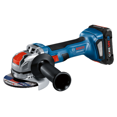 La Bosch GWX18V-8 est une rectifieuse angulaire X-LOCK ergonomique qui allie portabilité, performances et confort d’utilisation optimal. Son moteur sans balais délivre une puissance comparable à 8,0 A en filaire et des performances améliorées assurant une grande autonomie et productivité. Elle dispose de l’interface X-LOCK permettant de changer d’accessoire jusqu’à 5 fois plus rapidement qu’avec une interface de fixation conventionnelle. Un clic est audible lors du montage d’un accessoire X-LOCK (meule, disque, brosse) sur une rectifieuse X-LOCK. Le montage d’un accessoire ne nécessite ni clé à ergots ni écrou à embase. Pour retirer l’accessoire de la rectifieuse, il suffit d’actionner un levier. Cette rectifieuse 18V de 4-1/2 po est dotée d’une protection anti-redémarrage évitant tout démarrage intempestif, d’une fonction démarrage progressif facilitant l’amorce des coupes ainsi que d’une protection contre les surcharges réduisant les risques de surchauffe et de surcharge du moteur. Elle intègre des pignons coniques à denture hélicoïdale assurant une transmission fluide du couple pour les applications de meulage. La rectifieuse dispose en plus d’un capot de protection réglable sans clé et d’une tête d’engrenage avec collier de fixation amélioré, désormais compatible avec tous les capots de protection spécial meulage Bosch pour métaux et béton. Particulière fine et dotée de revêtements softgrip, elle possède une poignée latérale à deux positions. Cet ensemble inclut une batterie Advanced Power CORE18V® 4 Ah offrant une autonomie 2 fois plus élevée qu’une batterie BAT612 de 2 Ah de la précédente génération.