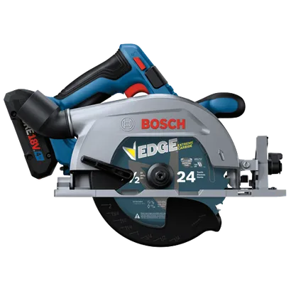 Bosch EDGE circular saw, model DCB624RH, with 24 teeth and a 5/8", 13/16" arbor, with an 18V 4.0 Ah battery.