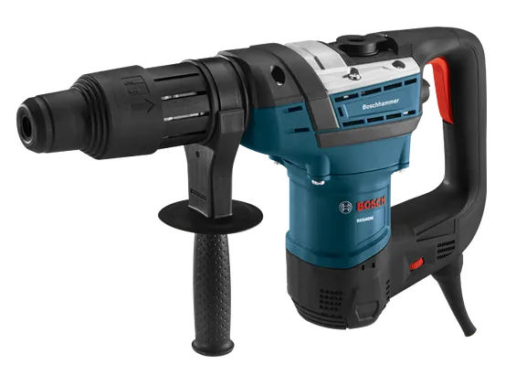 The Bosch RH540M SDS-max® 1-9/16 In. Combination Hammer is a rotary hammer and hammer-only tool designed for concrete contractors and professional remodelers who need a powerful and versatile tool. It delivers 6.1 Ft.-Lbs. of impact energy while weighing in at only 15.2 Lbs. The motor is rated at 170 to 340 RPM in rotary mode and 1,200 to 2,750 BPM in hammer mode, which will easily reduce concrete to dust. Its SDS-max® bit system allows tool-free and one-handed bit changes. The Vario-Lock mechanism lets users angle the chisel into 12 different positions to optimize the working angle. The hammer has a Dual Mode Selector Knob and service minder brushes, which clearly indicate when preventive maintenance is required.