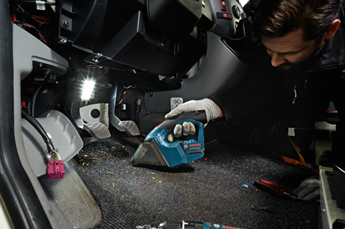 The VAC120 has high performance light weight design maximize effortless and fast jobsite cleanup. Utilizing the Bosch micro-filter system Bosch micro-filter system will filter 98% of particles in a flat design to maximizes canister capacity. The compact light weight design allows for highly portable comfortable use and convenient transportation. A fuel gauge is located on the exterior to indicate battery life. The canister has a push button for quick easy canister cleanout. Also included is the crevice nozzle for reaching tight corners. It has an impressive runtime, provided by the lightweight 12V Max Power System.