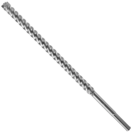 - Diseño de broca SDS max® de larga duración: fabricada con cabeza de carburo 100 % y diseño de cuatro cortadores, lo que la convierte en la broca de larga duración para la perforación en concreto armado y áridos duros