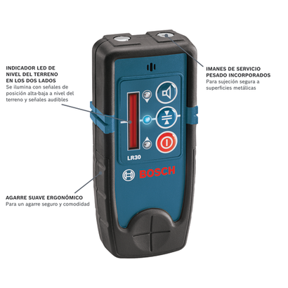 - Funciona con la mayoría de los láseres giratorios de luz roja de hasta 600 RPM