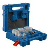 | HBT12EL | Hole Saws: (1) 3/4", (1) 7/8", (1) 1-1/8", (1) 1-3/8", (1) 1-3/4", (1) 2", (1) 2-9/16", (1) 3"; (2) Adapters; (2) High-Speed Steel 1/4" Hex Shank Pilot Bits | 1.75 | 12 | ||