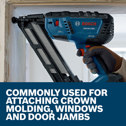 - Nail length – Bosch offers finish nails ranging from 1-1/4 In. to 2-1/2 In. long