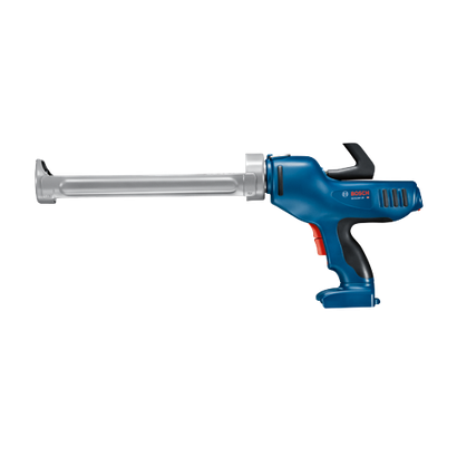 The Bosch GCG18V-29 18V Caulk and Adhesive Gun provides powered caulking to reduce the fatigue on your hand from manual caulk and adhesive guns. It has speed selection and a variable-speed trigger for a consistent bead size and easier caulk application. The caulk and adhesive gun features an auto-reverse feature on the plunger rod to help prevent dripping and material overflow. It holds 29 oz. tubes and delivers a no-load max of 18 In. per minute feed and 790 Lbs. of push force, to push even high-viscosity adhesives including anchor adhesives in concrete. The cage rotates, so that material can be applied in difficult areas while still keeping your preferred hand location. And it’s light – only 5 Lbs. (tool only, not including battery). It is compatible with Bosch 18V Lithium-ion batteries, and it fits 29 oz. tubes. The caulk gun has a hook for hanging between jobs and a lockout switch, so the trigger won’t be accidentally activated.