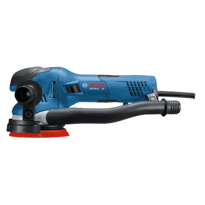 This ergonomically designed 5 In. sander features both a standard random-orbit mode and a direct-drive, eccentric-orbit turbo mode for aggressive stock removal. The Bosch GET65-5N Dual-Mode Random Orbit Sander’s turbo mode delivers 3X the removal rate of standard random-orbit action. It has a tapered top handgrip with soft-grip design. The auxiliary handle mounts on either side of the sander for outstanding control. The sander features an enhanced multihole pad system that is compatible with a wide variety of abrasive discs. The random-orbit action both orbits and rotates to provide a well-blended, ultra-smooth surface finish. It is built with an integral pad-dampening braking system to help prevent swirl marks, plus it has a medium microcellular hook-and-loop backing pad. The die-cast aluminum gear housing with dual-bearing pad mount helps lessen vibration. This tool has an enhanced dust-collection system for maximum efficiency when used with a vacuum cleaner and hose. Large channels in the pads allow debris to be easily pulled through vacuum port.