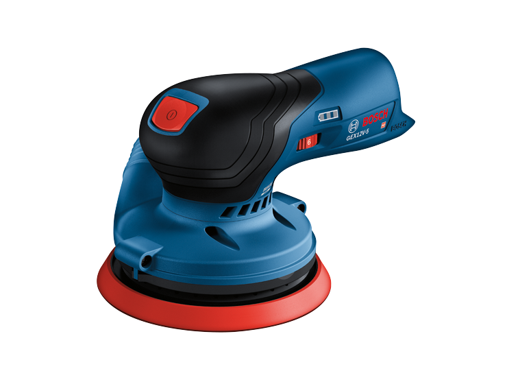 This 12V Max random orbit sander is designed to tackle hard-to-reach work areas with power and control. It features a well-balanced ergonomic palm grip, which allows your hand to be closest to the work material to avoid tilting and pressing down, for best results. The easy-to-reach on/off switch offers intuitive operation. The Bosch GEX12V-5 Brushless 5 In. Random Orbit Sander has a powerful 12V Max brushless motor, and it is engineered for professional applications. The speed selector delivers best results in different materials and applications. The sander has a 5 In. 8-hole sanding pad, which provides optimal dust collection when the sander is attached to a vacuum or a dust bag. The dust pad is ideal for both flat and concave/convex surfaces. The included dust bag allows mobile dust collection, while the tool has an interface for vacuum hose attachment. It also has soft-start technology, constant speed and a hook-and-loop backing pad. The sander has a compact shape with close-to-the-workpiece design for control in hard-to-reach areas.