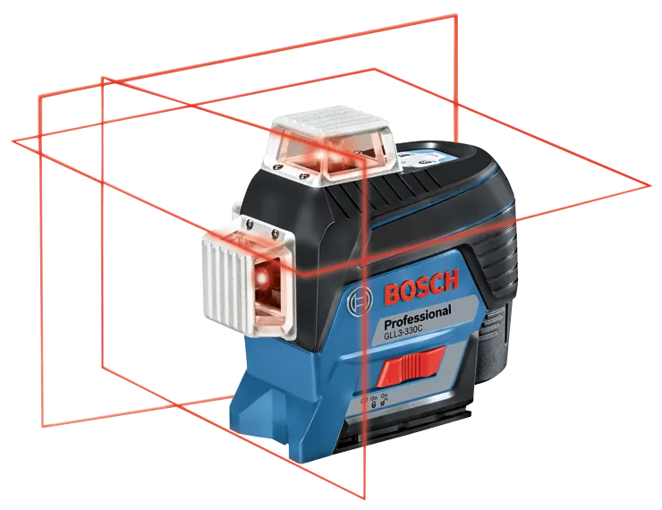 The Bosch GLL3-330C 12V Max 360° Connected Three-Plane Leveling and Alignment-Line Laser provides an all-in-one level and alignment solution for one-person job setup. The leveling laser generates three laser chalk lines in 360° laser planes – one horizontal and two vertical. With Bluetooth® connectivity, users can control the setup of the laser from across the room with their smart phone and the free Bosch Leveling Remote App. The laser offers dual power technology, employed the included Bosch 12V Max Lithium-ion battery for extended runtime, or with four AA alkaline batteries. The layout laser has a working range of up to 200 Ft. diameter, and with pulse mode the range extends up to 330 Ft. (diameter) with the optional LR 6 or LR8 receiver. This laser features VisiMax™ Technology to drive maximum line visibility, CAL Guard for calibration assurance and robust over-molded construction to withstand rainy or dusty jobsite conditions.