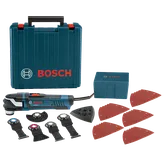 The Bosch GOP40-30C StarlockPlus®® Oscillating Multi-Tool Kit includes a tool that has the Starlock® next-generation 3-D tool-accessory interface, which produces best-in-class accessory grip, making it the new professional standard in oscillating tool performance. With more contact surface area between the tool and accessory, the Starlock® interface is a cupped 3-D tool-accessory connection that delivers greater torque transfer for an expanded work capacity. The no-touch blade-change system makes it easy to attach, remove or reposition blades. The professional-grade 4.0 Amp motor delivers a top speed of up to 20,000 oscillations per minute, and the tool provides a 3.0° oscillating arc. A variable-speed dial allows the user to set the optimal speed for the task at hand, and Constant Response circuitry maintains the desired speed under load This robustly constructed tool has reinforced gearing for more durability, less vibration and optimal force transmission. At only 3.3 Lbs., this light and compact tool reaches tight spaces, provides comfortable ergonomic grip zones and has an LED light for illumination in dark work areas. It is ideal for flush cuts such as door-jamb cuts (using various plunge or segment blades). The GOP40-30 provides outstanding versatility – utilizing the many Starlock® and StarlockPlus®® accessories to handle flush-cutting, plunge-cutting, sanding, grinding and many other tasks related to a wide array of materials. For compatibility with StarlockMax®® accessories, which perform industrial-grade applications, Bosch offers the GOP55-36 Oscillating Multi-Tool.