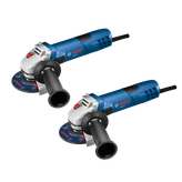 The Bosch GWS8-45-2P 4-1/2 In. Angle Grinder 2-Pack features two angle grinders that deliver plenty of power. The GWS8-45 is a light, ergonomic grinder, with a comfortable grip circumference that allows users to work comfortably for extended periods. This 4.2 Lbs. tool has a 7.5-amp motor that produces 11,000 no-load rpm. It has directed air flow that diverts dust away from vital components. Bosch's Service Minder brush system shuts off the tool when preventative maintenance is required, which helps to eliminate guesswork. This grinder has a two-position side handle. It has a burst-protection quick adjustable guard designed for user protection, a fast-switch disc change and a large spindle lock.