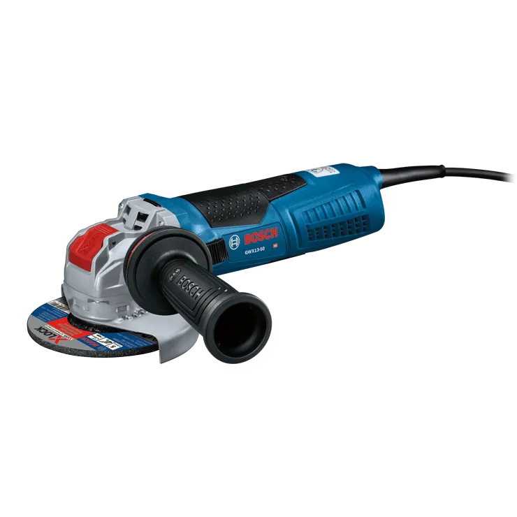 The Bosch GWX13-50 5 In. X-LOCK angle grinder features the X-LOCK mount, offering a wheel change that's up to five times faster than conventional interfaces. There’s an audible snap when mounting an X-LOCK wheel on an X-LOCK grinder. The wheel mounts properly without the need for a spanner wrench or flange nuts. The wheel is released from the grinder with the pull of a lever. The angle grinder delivers maximum power – 13 amps and 11,500 rpm. Equipped with epoxy-coated field windings and direct-motor cooling, this grinder is built for a longer tool life. It features spiral bevel gears for smooth transmission of power. It has a Vibration Control auxiliary handle for additional user comfort and an adjustable tool-free guard.