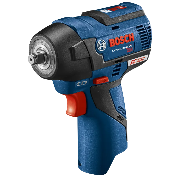 The Bosch PS82 12V Max Brushless 3/8 In. Impact Wrench is a lightweight, high-efficiency impact wrench that is ideal for pros to use for tight spaces or overhead work. This 12V 3/8 In. impact wrench has a 5.5 In. head length and weighs just 1.6 Lbs. (tool only, not including battery). But it delivers 85 Ft.-Lbs. of max torque, ideal for serial driving tasks, as well as no-load rpm ratings of 0-1,200 and 0-2,600 rpm and no-load ipm ratings of 0-2,700 and 0-3,100. It has the Bosch performance control system, which supplies two speed settings, one for high speed and high torque and one for low speed and low torque. And it provides a maintenance-free brushless motor, an upgraded all-metal gearbox and an optimized impact system – which together allow for unmatched efficiency, great runtime and longer life. This wrench has a 3/8 In. square drive anvil and a three-LED light ring.