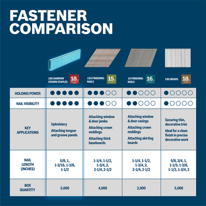 - Longueur : Bosch propose des agrafes à couronne étroite de 5/8 po à 1-1/2 po de longueur