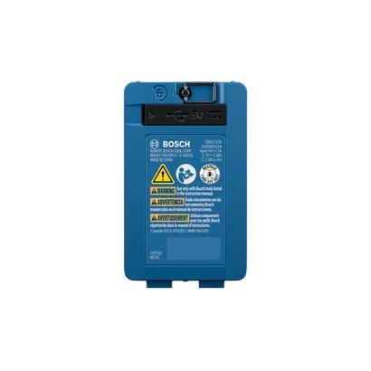 La batterie Lithium-Ion 3,7V 3,0 Ah GBA37V30 de Bosch offre aux télémètres Bosch une autonomie et une souplesse d'utilisation remarquables. La batterie affiche une vitesse de recharge impressionnante, avec une charge de 80 % en 1 heure et 50 minutes à l'aide d'un chargeur de 2 A (non fourni). Recharge complète en 3 heures et 30 minutes grâce au câble de recharge rapide USB-C inclus qui permet une charge continue pendant l'utilisation pour une productivité accrue presque sans interruption. Un raccord étanche permet la protection de la batterie sur tous les chantiers et dans toutes les conditions.