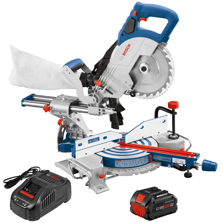Cette scie à onglets Bosch avec moteur sans balais allie capacité de coupe professionnelle et excellente maniabilité. Elle représente une solution sans fil extrêmement mobile pour les chantiers. La GCM18V-08 est une scie à onglets radiale coulissante à simple inclinaison de 8-1/2 po avec une capacité de coupe de corniche encastrée de 3-5/8 po et capacité de coupe contre butée de 47° vers la gauche à 47° vers la droite, ce qui est exceptionnel pour une scie à onglets sans fil de 8-1/2 po. Particulièrement facile à manier grâce à un poids de seulement 31,5 lb (outil seul, sans batterie), cette scie offre une capacité de coupe transversale de 10-5/8 po. Lors de tests, la scie a permis d’effectuer 377 coupes par charge avec une batterie High Power CORE18V®. L’ensemble inclut une batterie High Power CORE18V® 8 Ah offrant 100 % d’autonomie en plus et 75 % de puissance en plus que la batterie CORE18V® 4 Ah pour les applications très exigeantes. La scie dispose par ailleurs d’un système de guidage laser permettant d’aligner avec précision la lame avec la ligne de coupe et de barres coulissantes parfaitement centrées assurant un coulissement facile et harmonieux. Elle dispose aussi d’une sortie de poussière et d’un sac à poussière pour une aspiration efficace de la poussière.