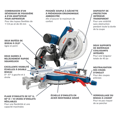 - Scie à double inclinaison : permet de réaliser des coupes composées/doubles de chaque côté de la pièce