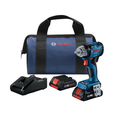 La clé à chocs 18V de 3/8 po GDS18V-230C Bosch avec bague de friction est un concentré de puissance avec un très bon rapport puissance/dimensions idéal pour les espaces exigus. La clé à chocs permet de disposer avec sa tête de 5,7 po de longueur d’un couple de décollement de 400 pi-lb pour le desserrage de boulons et d’un couple de serrage maximal de 230 pi-lb parfaitement maîtrisable. Elle offre le choix entre trois réglages vitesse/couple pour un maximum de précision et de maîtrise. Dans les deux modes présélectionnables ABR (Auto Bolt Release) et Auto Stop, l’outil s’arrête automatiquement dès qu’une baisse rapide de la résistance est détectée, afin d’éviter que les écrous et boulons tombent accidentellement par terre pendant leur retrait. Le porte-outil de 3/8 po avec bague de friction permet des changements de douille rapides, le clip de ceinture permet de garder l’outil à portée de main et la DEL d’éclairage assure une bonne visibilité dans les endroits sombres. L’ensemble inclut deux batteries Advanced Power CORE18V® 4 Ah qui garantissent des performances et une autonomie maximales, ainsi qu’un chargeur 18V standard.