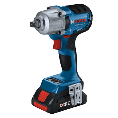 La clé à chocs 18V sans balais de 1/2 po à couple moyen avec goupille de retenue GDS18V-330PC Bosch est remarquablement performante pour visser des tirefonds dans des poutres épaisses, assembler des structures métalliques ou retirer des écrous de roue récalcitrants. Cette clé à chocs est dotée d’un porte-embout de 1/2 po avec goupille de retenue permettant de fixer des douilles sans aucune clé avec un maintien parfait. Le moteur sans balais permet de visser avec un couple de serrage jusqu’à 330 pi-lb et de dévisser avec un couple de décollement de 590 pi-lb tout en bénéficiant d’une grande autonomie. Il dispose de plusieurs modes, notamment d’un mode Auto Stop (arrêt automatique), évitant tout serrage excessif et donc tout risque d’endommagement des pièces et vis. Des réglages spécifiques peuvent être paramétrés et mémorisés pour des certains types de vis, boulons et matériaux via l’application Bosch PRO360 (requiert un module de connectivité vendu séparément). Quand le mode boulon est activé, la fonction ABR (Auto Bolt Release) arrête la rotation dès que le boulon ou l’écrou est desserré afin d’éviter qu’il tombe accidentellement. La fonction connectivité (requiert un module spécial vendu séparément) ne permet pas seulement de paramétrer et personnaliser des modes et des réglages, elle permet aussi d’obtenir des informations spécifiques sur l’outil et son état. L’ensemble comprend deux batteries Advanced Power CORE18V® 4 Ah offrant une autonomie 2 fois plus élevée que la batterie BAT612 de 2 Ah de la précédente génération.