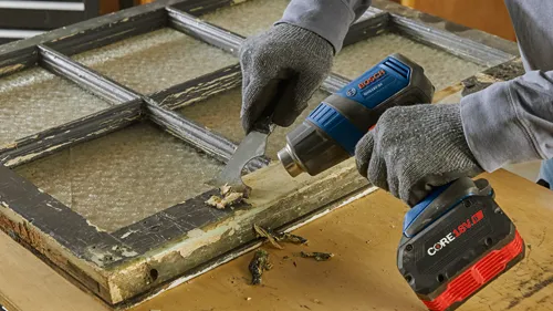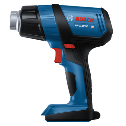 Le décapeur thermique 18V GHG18V-50 Bosch se distingue par un temps de chauffe rapide : il ne met que 6 secondes à atteindre 570 °F et permet donc de réduire le temps de travail sur les chantiers. Il dispose d’une buse de réduction produisant un flux d’air chaud concentré. Il est également fourni avec une buse à réflecteur dirigeant l’air chaud tout autour de surfaces pour un chauffage uniforme. Il offre le choix entre deux températures (930 °F et 570 °F) pour couvrir une grande variété d’applications. En combinaison avec une batterie CORE18V® de 8,0 Ah, il offre jusqu’à 21 minutes d’autonomie à 570 °F. Le débit d’air maximal de 175 litres/min assure un chauffage performant. Le décapeur thermique dispose d’une DEL d’éclairage, d’un interrupteur blocable évitant toute mise en marche accidentelle et d’une zone de préhension ergonomique. Ce décapeur thermique permet de thermorétracter des gaines de fil, enlever des étiquettes, faire fondre des adhésifs, cintrer des tuyaux plastiques et bien plus encore. Il est idéal pour les électriciens et les techniciens automobiles.