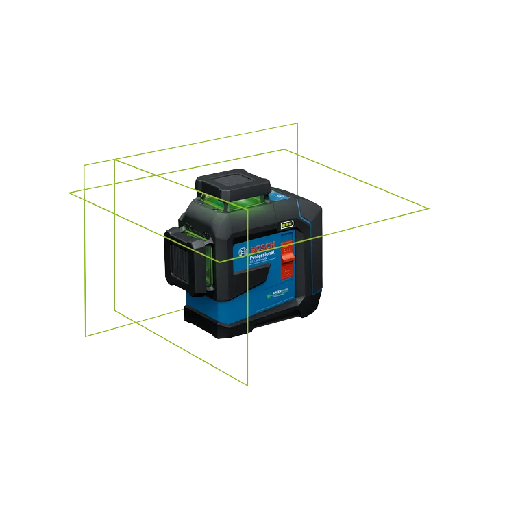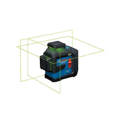Le laser lignes de nivellement/alignement 3,7V à faisceau vert et à trois plans sur 360°GLL300-42CGL de Bosch offre une solution de nivellement et d'alignement unique avec plusieurs sources d'alimentation. Les diverses possibilités d'alimentation permettent de maximiser la productivité en limitant les interruptions grâce à la batterie Li-Ion 3,7V 3,0 Ah rechargeable (incluse), les piles AA (vendues séparément) même durant la recharge avec le câble USB-C inclus. La technologie VisiMax™ intégrée optimise la visibilité des faisceaux pour plus de précision tout en maximisant l’autonomie quelles que soient les conditions de travail. Le laser de nivellement projette trois lignes laser vertes très lumineuses dans des plans sur 360° : un plan horizontal et deux plans verticaux pour une grande visibilité et une préparation rapide de la tâche à effectuer à partir d'un seul point initial. Le boîtier complètement recouvert de caoutchouc protège les points d'impacts principaux du niveau. Doté d’un indice de protection IP65 et d’un boîtier avec renfort en caoutchouc, il ne craint ni l’eau ni la poussière. Le laser a une portée de 100 pi et ses faisceaux lumineux fins offrent une précision de 1/8 po à une distance de 30 pi. Une rallonge de portée de 260 pi (mesurée horizontalement à 135º ou 315º) de la ligne horizontale est disponible (compatible avec le système de mise à niveau) et vendue séparément. Le système de calage pendulaire intelligent permet l’auto-nivellement de l’outil et signale quand celui-ci n’est pas à niveau. Le système se bloque automatiquement lors de la mise hors tension de l’outil pour un transport en toute sécurité. Les options d'économie d'énergie et de réglage de la luminosité permettent de prolonger la durée des piles. La base avec renforts en caoutchouc permet de stabiliser le laser et les supports de montage à filet de ¼ po et de 5/8 po permettent de le positionner facilement.