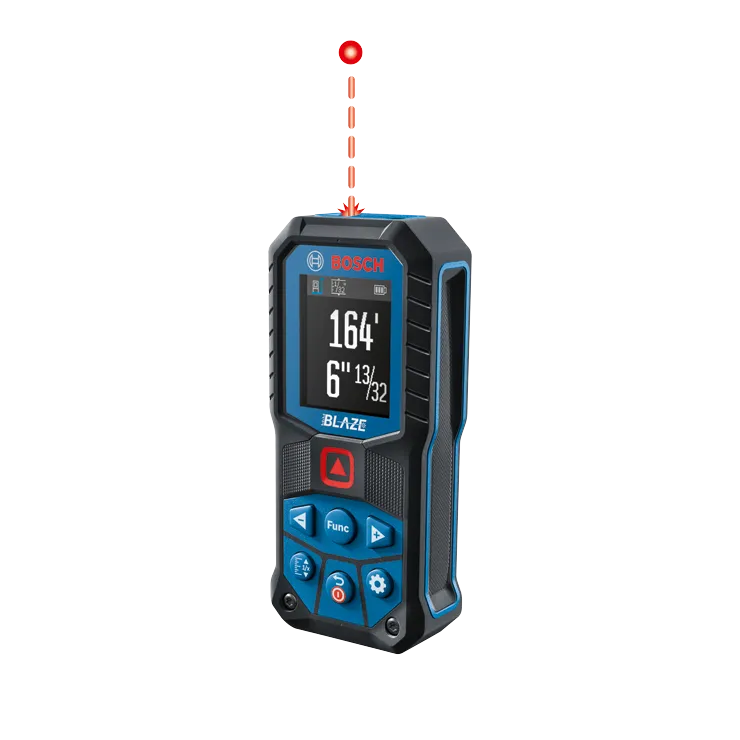 Ce télémètre laser de 165 pi est un outil complet avec écran couleur facile à lire, grande précision et boîtier renforcé pour une grande longévité. Doté d’une précision de ±1/16 po, le GLM165-22 BLAZE™ Bosch inclut un bouton permettant d’arrondir les résultats de mesure à la fraction la mieux adaptée à l’application ainsi qu’un retour tactile pour les chantiers bruyants. Le télémètre possède en plus un surmoulage intégral en caoutchouc agissant comme une cage de sécurité. Conforme à l’indice de protection IP 65, il dispose d’un design ergonomique et d’une poignée souple. Il intègre un mode de mesure en temps réel avec actualisation en continu des valeurs affichées lorsque l’on se rapproche ou s’éloigne de la cible. Au total 11 fonctions de mesure sont incluses, dont mesure de distances en temps réel, mesure de distances/surfaces/volumes et mesures indirectes, fonction addition/soustraction.