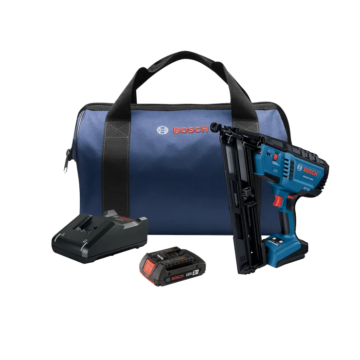 Ensemble cloueur de finition 18V Bosch incliné calibre 15 sans balais avec (1) batterie Standard Power de 2 Ah