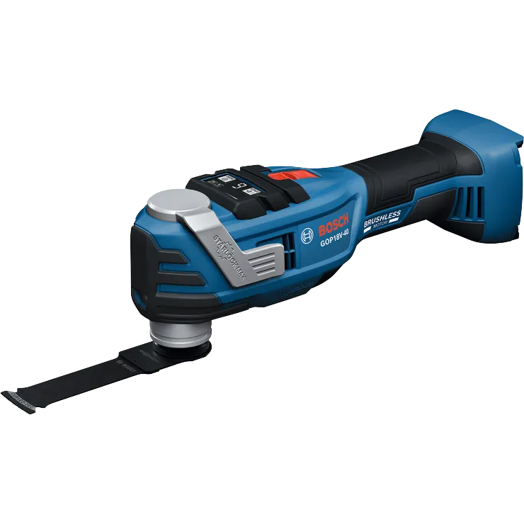 À la fois puissant et polyvalent, l'outil oscillant Bosch GOP18V-40 StarlockMax® est idéal pour les rénovateurs, les charpentiers, les plombiers, les plaquistes et bien d'autres. Le puissant moteur sans balais produit 10 000 à 20 000 oscillations par minute et offre le choix entre six réglages de vitesse. L'interface utilisateur intuitive permet de gérer des fonctions intelligentes telles que la fonction Auto-Stop qui arrête l'outil en fin de coupe, et l'Adaptive Speed Control (régulation de vitesse adaptative) qui assure un démarrage en douceur puis une accélération progressive jusqu'à la vitesse choisie. L'angle d'oscillation de désormais 4º permet des coupes plus rapides et plus agressives et un enlèvement de matière plus efficace. Doté de l'interface outil-accessoire 3D StarlockMax®, cet outil oscillant assure un très bon transfert de couple pour des résultats encore meilleurs. Le système de changement de lame par clic facilite la fixation, le retrait ou le repositionnement des lames pour encore plus d'efficacité. L'interface StarlockMax® permet un changement d’accessoire 8 fois plus rapide que l’interface OIS standard de Bosch. Le design ergonomique avec circonférence de prise en main réduite et amortissement des vibrations amélioré contribue à réduire de 80 % la fatigue de l'utilisateur par rapport à son prédécesseur.
