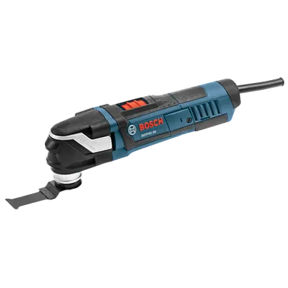 L’ensemble d’outil polyvalent Bosch GOP40-30C StarlockPlus® comprend un outil intégrant l’interface 3D Starlock® de nouvelle génération assurant une prise optimale des accessoires et faisant de cet outil le nouveau standard professionnel en termes de performances des outils oscillants. Grâce à une plus grande surface de contact entre l’outil et l’accessoire, l’interface Starlock® réalise une connexion 3D entre l’accessoire et l’outil permettant un meilleur transfert de couple et améliorant les performances de l’outil oscillant. Le système de changement de lame sans contact facilite la fixation, le retrait et le repositionnement des lames. Le moteur professionnel de 4,0 A permet de travailler avec une fréquence jusqu’à 20 000 oscillations/minute et une amplitude d’oscillation de 3,0°. Une molette de présélection de vitesse permet d’adapter manuellement la vitesse au travail à effectuer et l’électronique Constant Response maintient cette vitesse constante quelle que soit la charge. Cet outil robuste dispose d’un engrenage renforcé pour plus de durabilité, moins de vibrations et une transmission de couple optimale. Particulièrement compact et léger (seulement 3,3 lb), cet outil atteint les espaces restreints, dispose de zones de préhension ergonomiques et intègre un éclairage par DEL pour l’éclairage dans les zones sombres. Il est idéal pour réaliser des coupes affleurantes par ex. dans des montants de portes (avec des lames plongeantes ou segmentées). Le GOP40-30 offre une polyvalence exceptionnelle : il permet d’utiliser les nombreux accessoires Starlock® et StarlockPlus® pour réaliser des coupes affleurantes ou plongeantes, des travaux de ponçage et meulage et de nombreuses autres tâches dans une multitude de matériaux. Bosch propose l’outil oscillant polyvalent GOP55-36 permettant d’utiliser les accessoires StarlockMax® dédiés aux applications industrielles, .
