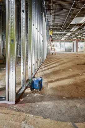 - Orientation verticale et aplomb – fournit une poutre verticale à 90° pour les applications d’agencement, d’équerrage et d’aplomb et fonctionne en orientation verticale pour l’installation de façades et les applications d’agencement à longue portée