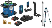 L’ensemble laser rotatif horizontal/vertical 18V auto-nivelant connecté REVOLVE4000 à fonction de calibrage uCAL constitue une solution complète pour des mises à niveau précises, en extérieur et en intérieur. Il dispose d’une fonction double pente manuelle permettant de régler séparément l’inclinaison pour les axes X et Y. Ce laser est alimenté par une batterie CORE18V® 4 Ah Bosch lui conférant une grande autonomie. Son laser à faisceau vert est jusqu’à 4 fois plus lumineux que les faisceaux standard de couleur rouge. Ce laser rotatif est compatible avec les batteries Lithium-Ion Bosch CORE18V® de 4 Ah et 8 Ah. Il dispose aussi d’un adaptateur permettant d’utiliser 4 piles alcalines (type D). Le REVOLVE4000 est doté d’une cage surmoulée, d’une poignée innovante et d’une protection IP68 contre la poussière et les projections d’eau. Il dispose d’une connectivité Bluetooth® pour l’utilisation de l’application Levelling Remote Bosch sur un appareil mobile de type smartphone. Cette application permet la mise en marche/l’arrêt à distance, le paramétrage manuel de la fonction double pente et plus encore. Le laser rotatif dispose par ailleurs de la fonction uCAL guidant l’utilisateur étape par étape tout au long de la procédure de calibrage. Très pratique, cette fonction évite les durées d’immobilisation et garantit des mesures toujours précises. Sa précision atteint ±1/16 po à 100 pi de distance en mode horizontal et ±1/8 po à 100 pi de distance en mode vertical et sa portée jusqu’à 4 000 pi avec une cellule de réception laser. Le laser dispose d’un faisceau vertical à 90° pour les applications d’alignement, d’équerrage et de mesure d’aplomb. Cet ensemble complet inclut une télécommande, une batterie 18V 4 Ah, un chargeur, un adaptateur pour piles alcalines, un support mural, une cellule de réception laser, un trépied en aluminium, une mire robuste et un solide coffret de transport.