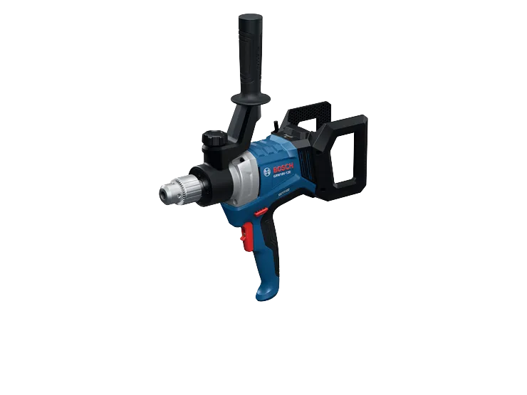 L’agitateur Bosch de ½ po GRW18V-120 délivre la puissance et le couple nécessaires pour mélanger des mortiers lourds, des boues, des résines époxy et des peintures avec un régime allant jusqu'à 650 tr/min. Sa gâchette de variation de vitesse et sa fonction démarrage progressif permettent de travailler en marche avant et en marche arrière, ce qui donne à l'opérateur un meilleur contrôle pour obtenir un mélange homogène et éviter les éclaboussures au démarrage. Le KickBack Control protège contre les phénomènes de rebond intempestifs en cas de blocage de la tige mélangeuse lors du mélange de produits exigeants. La poignée ergonomique à positions multiples permet d'optimiser la prise en main pour un maximum de confort. Un mandrin métallique à clé de ½ po permet un serrage solide et sûr des lames mélangeuses et le boîtier de batterie renforcé protège contre les chutes accidentelles.