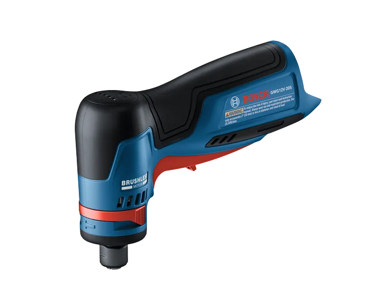La meuleuse droite à renvoi d’angle 12V Max de 1/4 po GWG12V-20SN a été conçue avec pour priorité le confort et la maîtrise. Son interface d’utilisation multifonctionnelle permet de sélectionner 5 vitesses différentes par simple pression sur un bouton. Des DEL multicolores permettent de vérifier rapidement et facilement le niveau de charge de la batterie, la vitesse présélectionnée et l’état de l’outil lors de son utilisation. La gâchette assure une maîtrise parfaite et permet un dosage précis de l’accélération en fonction de l’application. Particulièrement compacte et dotée d’une poignée mince, cette meuleuse à renvoi d’angle est idéale pour les espaces exigus. Légère avec seulement 1,2 lb (outil seul) et ergonomique, elle est conçue pour réduire la fatigue. Son blocage de broche innovant permet de changer d’accessoire rapidement pour se remettre au travail sans perdre de temps. La meuleuse est dotée d’un système de freinage assurant une immobilisation rapide du disque ainsi que d’une protection contre les surcharges arrêtant l’outil en cas de blocage du disque.