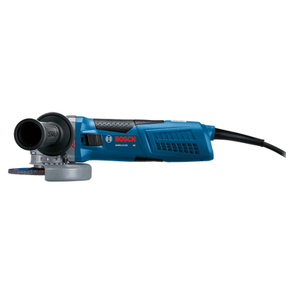 Le modèle Bosch GWS13-50 5 po. La rectifieuse angulaire est plus puissante que les modèles des générations précédentes malgré une taille identique : 13 A et 11 500 tr/min. Le flux d’air dirigé qui éloigne la poussière des composants vitaux et le refroidissement direct du moteur permettent des capacités de surcharge supérieures. Pour le confort et le contrôle de l’opérateur, le modèle est doté d’une poignée latérale Vibration Control, qui le rend plus facile à utiliser. Pour la sécurité de l’utilisateur, le modèle est doté d’un capteur d’accélération intégré pour limiter le recul par inadvertance, et d’une protection de redémarrage pour protéger contre un démarrage accidentel. La rectifieuse utilise l’électronique Constant Response pour des démarrages en douceur, un fonctionnement stable et une vitesse fiable sous charge. Il est doté d’une protection réglable rapidement sans outil contre les éclats et d’un gros verrouillage de broche pour un changement de disque plus pratique. Les balais Service Minder arrêtent la rectifieuse quand un entretien préventif est nécessaire.