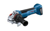 La rectifieuse angulaire 18V sans balais de 4-1/2 – 5 po GWS18V-10P Bosch est une rectifieuse solide et ergonomique avec poignée fine pour un meilleur confort d’utilisation et une puissance très élevée. Cette rectifieuse sans fil allie à la perfection performances, maîtrise et puissance. Le moteur sans balais de la rectifieuse permet de disposer d’une puissance comparable à celle d’une rectifieuse filaire de 10 A et de performances améliorées, pour une plus grande autonomie et productivité. La rectifieuse possède un système de freinage assurant une immobilisation très rapide du disque lorsque l’interrupteur Marche/Arrêt est placé sur Arrêt. Elle dispose aussi d’autres fonctions électroniques évoluées, notamment d’un contrôle des risques de rebond (KickBack Control), d’une protection anti-redémarrage et d’une constante électronique permettant de travailler à vitesse constante quelle que soit la charge. Elle est par ailleurs dotée d’un interrupteur à palette non blocable actionnable dans plusieurs positions pour un plus grand confort et une meilleure maîtrise et dispose, sur la tête d’engrenage, d’un collier de fixation compatible avec tous les capots de protection Bosch pour rectifieuses.