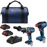 L’ensemble combiné de 2 outils sans balais Bosch avec deux batteries CORE18V® offre des performances professionnelles de perçage et de vissage sans fil. La GDX18V-1860C est une visseuse/clé à chocs deux en un permettant de passer rapidement d’une visseuse à chocs à une clé à chocs. Elle combine un porte-outil hexagonal 1/4 po à changement rapide avec gorge de verrouillage pour embouts de vissage et un porte-outil à carré mâle de 1/2 po pour douilles. Des modes préréglés, tels que le mode Auto Stop excluant tout vissage excessif, peuvent être paramétrés avec précision via l’application Bosch PRO360 (le module de connectivité est inclus). En marche inverse, avec le mode boulon activé, la fonction Auto Bolt Release empêche que les boulons et écrous tombent accidentellement pendant leur retrait. La perceuse-visseuse à percussion de 1/2 po GSB18V-975C délivre un couple maximal de 975 po-lb, une fréquence de frappe de 0 à 31 500 BPM et ne pèse que 3,4 lb (outil seul, sans batterie). Elle dispose de réglages de vitesse variables et d’un embrayage de précision avec 25 positions de présélection de couple. Elle est dotée d’un contrôle de rebond (KickBack Control) réduisant les risques de blessures liés à une réaction de couple de rotation soudaine. L’ensemble comprend deux batteries Advanced Power CORE18V® 4 Ah offrant une autonomie 2 fois plus élevée que la batterie BAT612 de 2 Ah de la précédente génération.