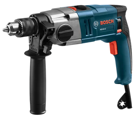 La perceuse à percussion à deux vitesses Bosch HD18-2 possède un puissant moteur de 8,5 A qui peut effectuer tous les travaux de perçage de maçonnerie grâce à une fréquence de frappe maximale de 51 000 BPM qui réunit puissance et durabilité. Les capacités de perçage de l’outil vont de 3/4 po dans la maçonnerie à 1-1/2 po dans le bois. La HD18-2 dispose d’une poignée auxiliaire de contrôle de couple qui se verrouille en place ; la poignée intègre une jauge de profondeur. Le sélecteur deux modes permet de passer facilement du mode perçage sans percussion au mode perçage avec percussion. Une plaque porte-balais rotative permet de dégager facilement les forets coincés. Elle possède deux vitesses : une pour privilégier une vitesse élevée et l’autre pour bénéficier d’un couple élevé. Le mandrin robuste à trois mors de 1/2 po exerce une force de serrage élevée qui empêche les forets de glisser. Cette perceuse robuste est dotée d’un carter avant en métal pour une durée de vie plus longue, d’une poignée pistolet avec revêtement caoutchouté et d’un embrayage de sécurité intégral assurant une bonne protection contre le recul.