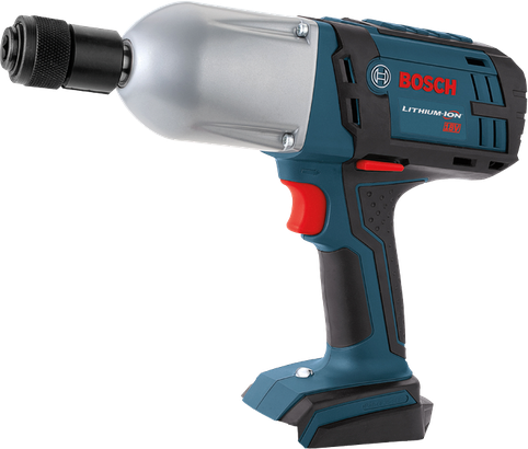 L’ensemble clé à chocs 18 V à couple élevé HTH182B Bosch comprend une clé à chocs pour usage industriel avec mandrin hexagonal à changement rapide de 7/16 po. Il est destiné aux entrepreneurs qui travaillent le béton, aux ateliers automobiles, aux menuisiers et autres professionnels qui passent beaucoup de temps à visser des écrous, boulons et ancrages avec un couple élevé (tirefonds, écrous de roue, etc.). La visseuse sans fil délivre un couple de 500 po-lb adapté aux usages professionnels. L’outil sans fil dispose d’un mandrin automatique de 7/16 po permettant des changements d’embouts rapides. Le moteur tout en métal produit 0 à 2 100 frappes/min et un régime de 0 à 1 900 tr/min. Cette clé à chocs dispose d’un système marteau-enclume taré par ressort qui maîtrise les réactions de couple de façon à faciliter les vissages et travailler tout en puissance.