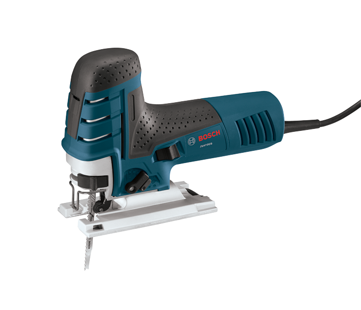 La scie sauteuse à poignée en pommeau Bosch JS470EB offre une précision de coupe inégalée. Les menuisiers et les installateurs de cuisines et de salles de bains apprécieront le meilleur moteur de sa catégorie de 7,0 A et sa commande à vitesse variable, faisant de cette scie un excellent choix pour la coupe en courbe. Elle offre de 500 à 3 100 courses/minute : avec une longueur de course de 1 po. Son corps est ergonomique avec une poignée de prise souple avant pour assurer confort et contrôle à l’utilisateur. Elle dispose d’un carter d’engrenages en aluminium. Ce mécanisme entièrement équilibré à faible vibration est doté d’une conception en plongée pour des vibrations faibles et d’une électronique Constant Response qui permettent de maintenir une vitesse constante en conditions de charge. Elle est équipée d’une grande plaque d’assise en aluminium moulé avec un recouvrement du sabot en plastique ne laissant pas de marque. La fixation de la lame multidirectionnelle de la JS470EB offre une prise supérieure à celle des lames à tige en T (mais elle n’est pas compatible avec les lames à tige en U). Une molette de réglage de vitesse permet de présélectionner la vitesse de fonctionnement. Le levier d’éjection de la lame permet d’éviter de toucher la lame chaude. Un dispositif soufflant anti-poussière garantit une visibilité optimale de la ligne de coupe.