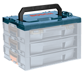 Le tiroir L-RACK Bosch constitue une option d’extension personnalisable pour le système Click & Go. Les utilisateurs peuvent désormais ajouter de nouveaux tiroirs L-RACK, mallettes i-BOXX53 et ensembles de casiers pour un rangement et un transport personnalisés. Ajoutez quelques tiroirs L-RACK à un coffret L-BOXX (1, 1A, 2, 3, 3D ou 4) afin d’obtenir une solution de rangement et de transport adaptée ou empilez-les les uns au-dessus des autres ou côte à côte afin de créer un système de rangement fixe dans votre atelier. Tout le système utilise la même technologie d’empilage à 1 clic pour vous aider à rester organisé et mobile. Le L-RACK-T constitue la poignée supérieure à fixer au-dessus des tiroirs L-RACK-S. La poignée supérieure permet un transport facile des racks empilés. Combinez la poignée L-RACK-T avec plusieurs tiroirs L-RACK-S pour créer une structure de rangement adaptée à vos besoins.