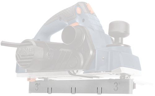 - Permet à la raboteuse de créer un biseau de 3° sur la face arrière des bords d'une porte (sans charnières) de sorte qu'elle ne frappe pas la jambe