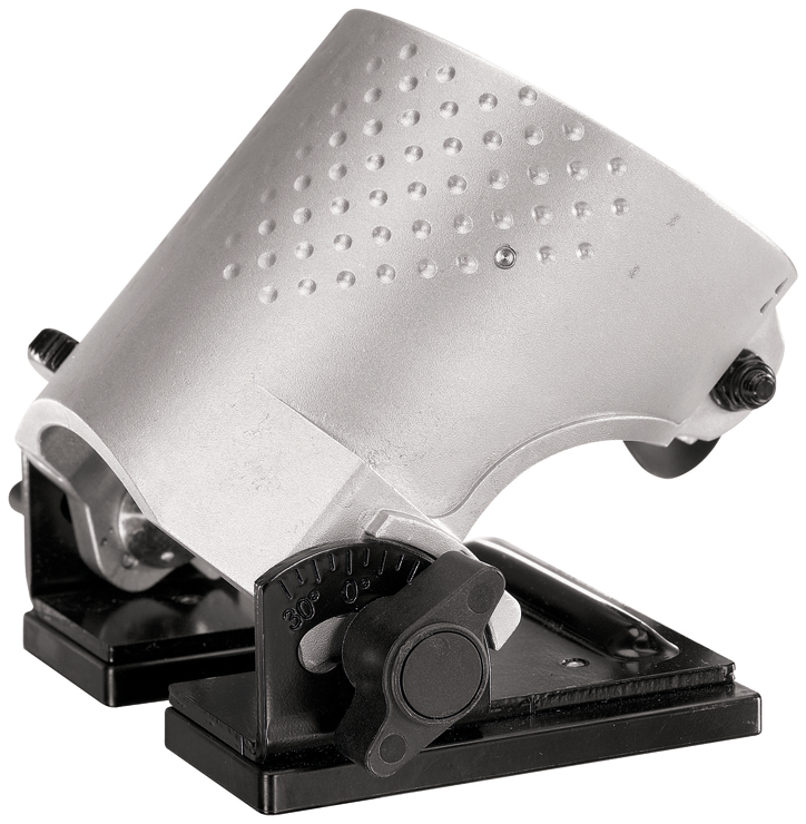 - Cette base inclinée possède des crans aux angles clés et permet le toupillage dans des endroits difficiles à atteindre, comme le bord stratifié d’un comptoir près du dosseret, et également le toupillage à des angles spécifiques