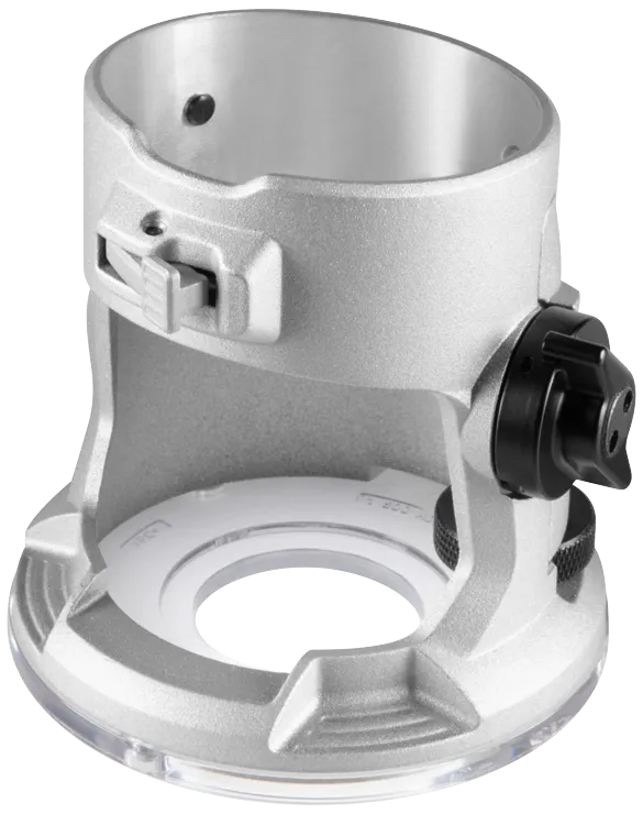 La base fixe Bosch PR101 comprend un système de réglage de profondeur innovant, faisant de l’affleureuse GKF12CE l’outil idéal pour arrondir des lames de terrasse et balustrades, pour réaliser des mortaises de charnière, des profils décoratifs, des rainures, des découpes de fenêtres, des inserts décoratifs, des coupes de stratifiés et bien plus encore. Elle est constituée d’un corps robuste (d’une seule pièce) à 360° en aluminium pour un maximum de précision. Elle permet l’utilisation de grandes fraises, jusqu’à 1-5/16 po de diamètre. Elle dispose d’un socle rond en polycarbonate translucide centrable pour un guidage aisé, d’un moteur pouvant être retiré facilement par simple pression sur un bouton et d’échelles de profondeur graduées en pouces et en cm.