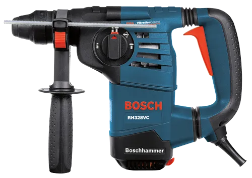 Le marteau perforateur SDS-plus® de 1-1/8 po RH328VC Bosch délivre une force de frappe de 2,4 pi-lb. À la fois léger (seulement 7,7 lb) et compact (12,5 po de longueur), il offre un très bon rapport taille/performances. Son moteur de 8,0 A produisant une fréquence de frappe de 4 000 cps/min en fait le choix idéal pour les travaux de construction et de démolition. Le sélecteur multifonctions permettant de choisir entre mode perforation, perforation, perçage sans percussion et burinage assure une grande polyvalence et répond aux besoins d’un grand nombre d’applications. Le système Vibration Control intégré dans le mécanisme de frappe et agissant au niveau de la poignée améliore le confort d’utilisation. Le marteau perforateur dispose d’un embrayage intégral coupant la transmission du couple en cas de blocage du foret et de la fonction Vario-Lock permettant d’orienter le ciseau (burin) dans 12 positions différentes pour optimiser l’angle de travail.