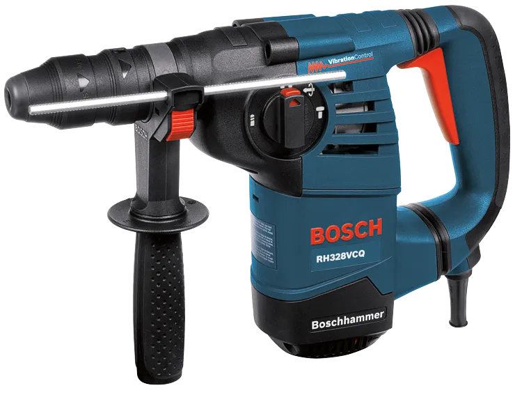 Le marteau perforateur SDS-plus® de 1-1/8 po RH328VCQ Bosch délivre une fréquence de frappe de 4 000 cps/min, ce qui en fait un choix judicieux pour les projets de démolition et de construction. Il offre un très bon rapport poids /performance avec son moteur de 8,0 A produisant une force de frappe de 2,4 pi-lb et son poids de seulement 7,9 lb. Le mandrin Quick Change permet de remplacer rapidement et facilement le mandrin SDS-plus® par un autre mandrin. Il dispose de la fonction Vario-Lock permettant d’orienter le burin dans 12 positions pour optimiser l’angle de travail et pour plus de confort. Le sélecteur multifonctions permettant de choisir entre mode perforation, perforation, perçage sans percussion et burinage assure une grande polyvalence et répond aux besoins d’un grand nombre d’applications. Le système Vibration Control intégré dans le mécanisme de frappe et agissant au niveau de la poignée améliore le confort d’utilisation. Le perforateur dispose d’un embrayage intégral coupant la transmission du couple en cas de blocage du foret.